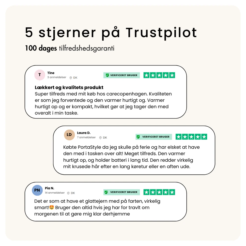 Uanset om du har brug for at rette frisuren efter en lang dag, glatte et par genstridige totter eller skabe et mere poleret look inden et møde, er PortaStyle™ skabt til at levere hurtige og effektive resultater. Den hurtige opvarmning sikrer, at du kan style dit hår på få minutter, uanset hvor du befinder dig. Herunder kan du se hvad brugerne siger om PortaStyle™.