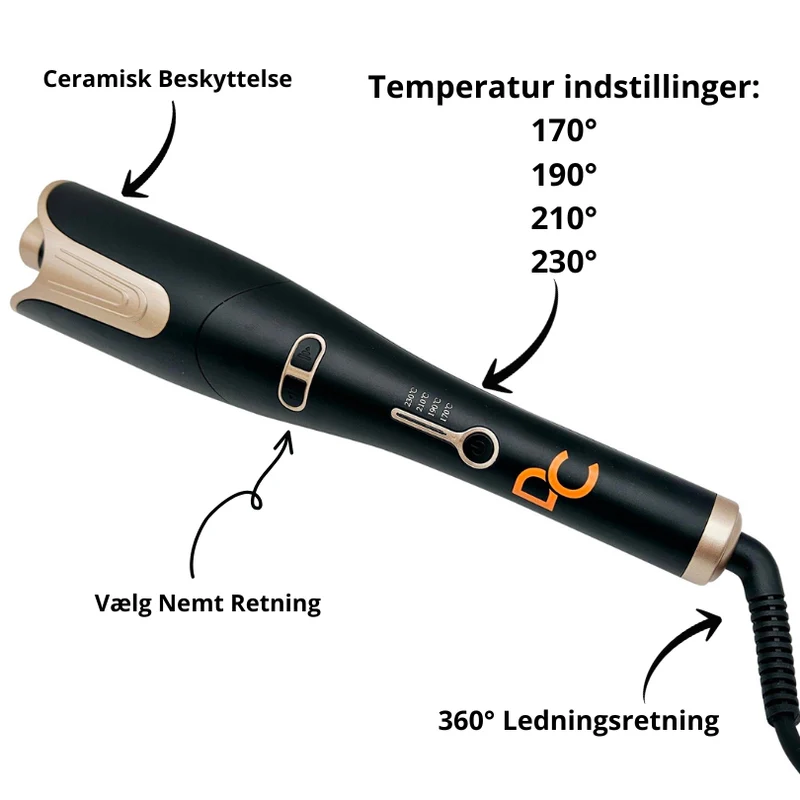 - Funktioner: Automatisk krølleteknologi, krølleretning, keramisk belægning